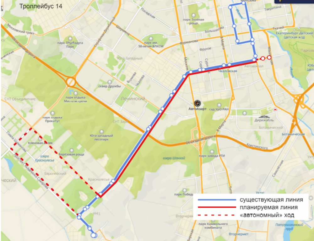 Маршрут № 14. Схема: комитет по транспорту администрации Екатеринбурга