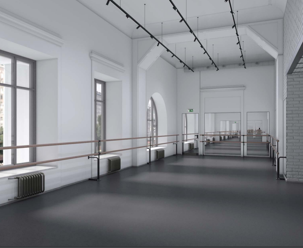 Хореографический зал увеличится в размерах, важная деталь – высокие потолки. Визуализация: эскизный проект