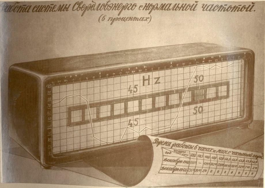 Частота тока в годы войны, фото из отчетного альбома "Свердловэнерго" 1943 год.