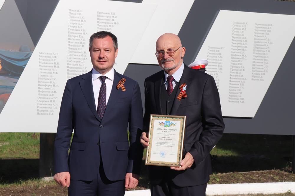 Благодарственными письмами были отмечены председатель правления АО "УК "МидЮрал" Сергей Гильварг, исполнительный директор АО "КЗФ" Николай Кузьмин, заместитель исполнительного директора по персоналу и общим вопросам АО "КЗФ" Олег Шадрин, а также Юрий Привалов за весомый личный вклад в сохранение памяти о ветеранах Великой Отечественной войны.