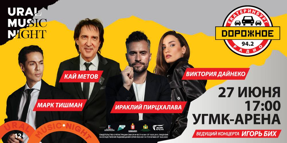 Концерт пройдет с 17.00 до 23.00 на площадке "Дорожного радио" рядом с "УГМК-Ареной" (Степана Разина, 15), а заряжать его зрителей будет ведущий программы "С утра пораньше" в Санкт-Петербурге, выходец с Урала Игорь Бих. Кроме того, перед звездами эстрады выступят лучшие группы Свердловской области.