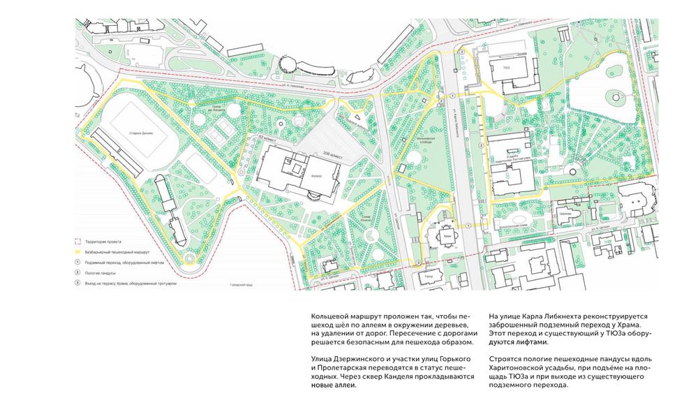 Еще застройщик намерен реконструировать подземный переход возле Храма на Крови на Карла Либкнехта. Его и переход у ТЮЗа предлагается оборудовать лифтами. Кроме того, стадион "Динамо" и прилегающие территории можно обустроить под площадку для главных городских праздников и других мероприятий.