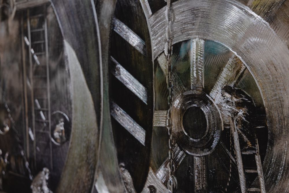 Центральное место в экспозиции занимают работы живописца и графика Валентина Новиченко. Для него металл – не только материал, но и носитель опыта: производственного, физического, временного. Вокруг его произведений выстраивается последовательность портретов работников, сделанных другими авторами.