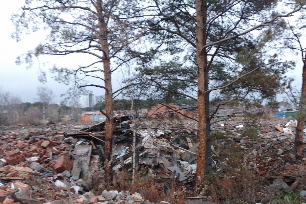 Предположительно, источник мусора – попавшие под снос промышленные постройки на соседнем участке. Фото: Елена Кольцова