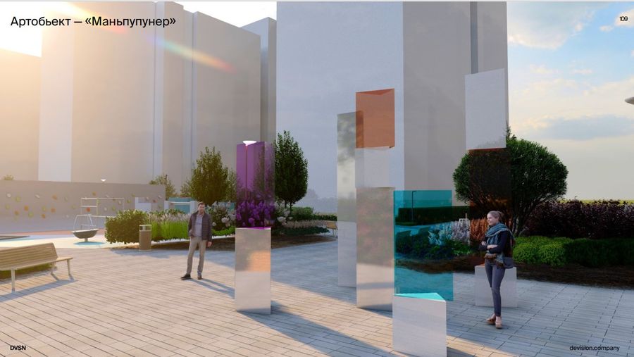 Рядом на просторной площадке расположатся необычные кресла Spun, созданные по проекту известного британского архитектора Томаса Хизервика: они вращаются по принципу юлы и сделаны таким образом, что в любом положении в них удобно сидеть и вертеться. Зимой бульвар станет местом проведения городских событий и праздничных мероприятий, а арт-объект "Маньпупунёр" символически свяжет все темы проекта – природу, культуру и современный дизайн.