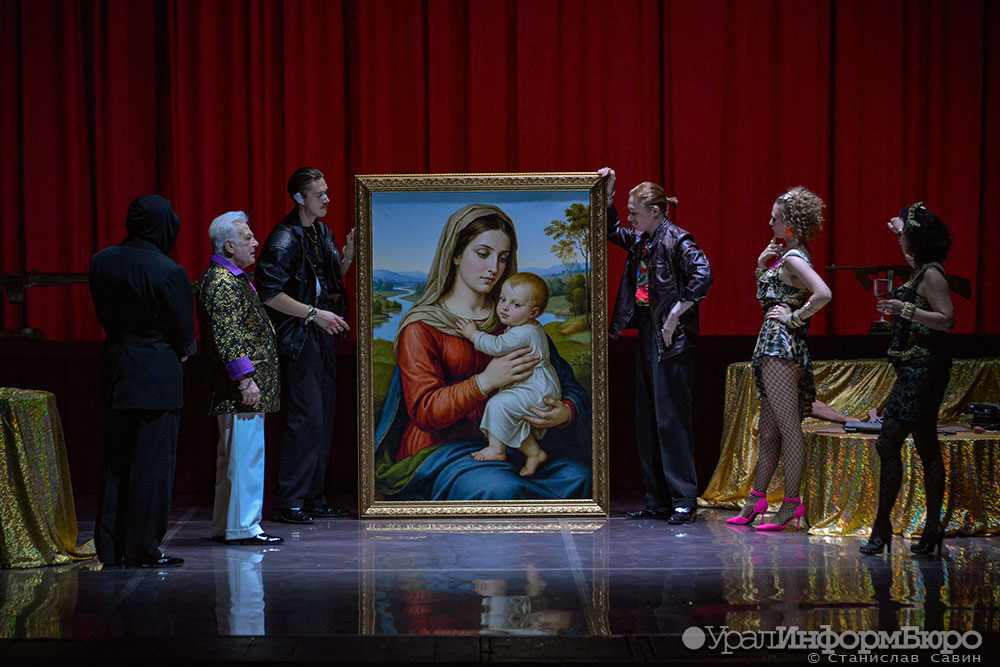 Возможно, надо сразу настраиваться на то, что идешь в драмтеатр на буффонаду, в которой из американских 30-х перепрыгиваешь в Екатеринбург начала нынешнего века. Вот же ходят по сцене не нью-йоркские гангстеры, а уралмашевские братки со своими семьями! И кому-то из лидеров ОПГ втюхивают краденную картину Рафаэля. А для него это просто краски на холсте, которые надо выгодно перепродать, плюс по ходу пьесы еще пристрелить конкурента-мафиози.
