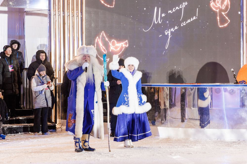Вместе со зрителями они посмотрели ледовое шоу, а потом позвали Деда Мороза и Снегурочку, чтобы зажечь огни главной елки площадки, сообщает "Уралинформбюро".