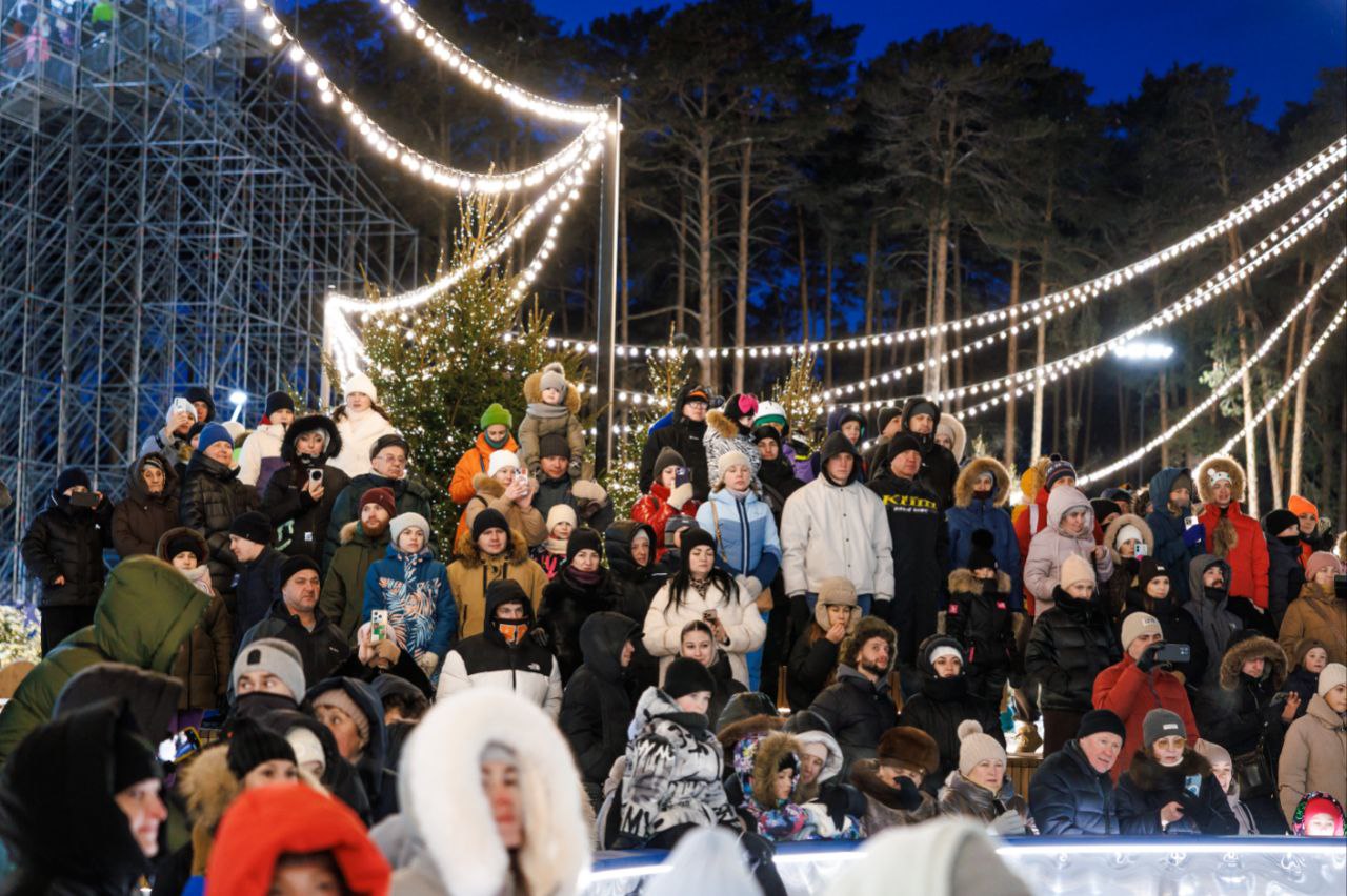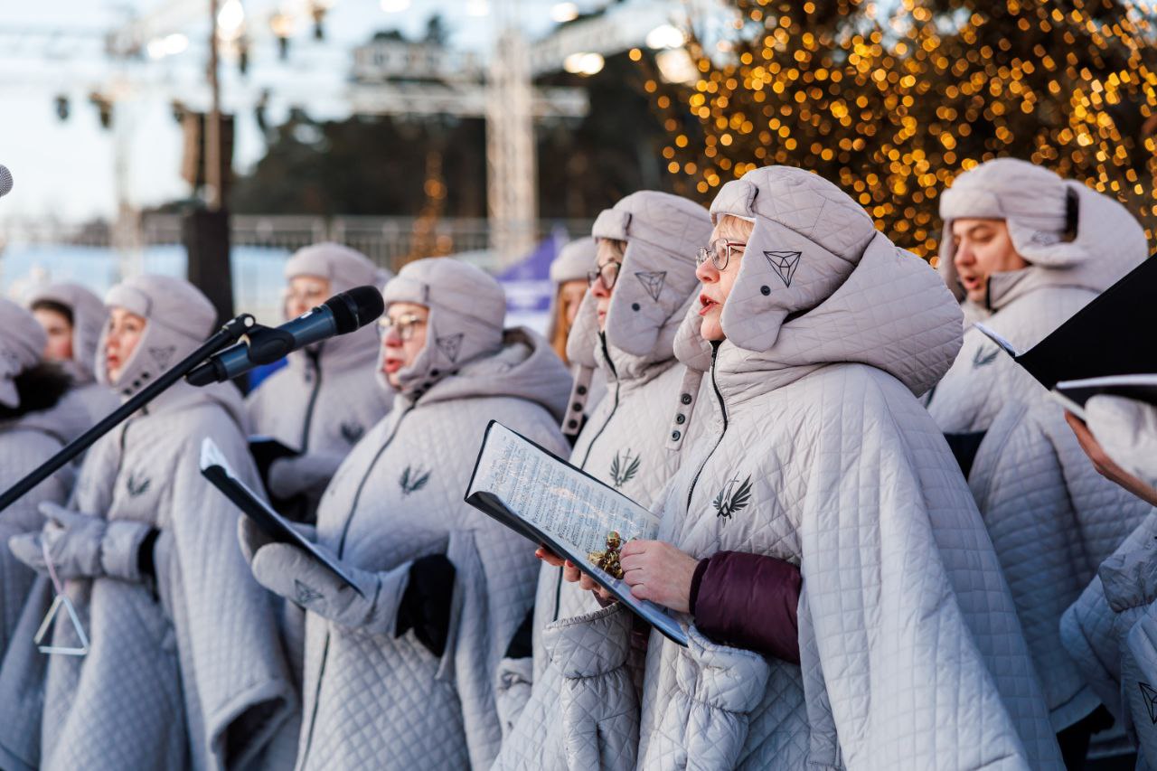 С рождественской программой выступил академический хор "Л52", а профессиональные фигуристы театра "Воскресенье" показали ледовое шоу.
