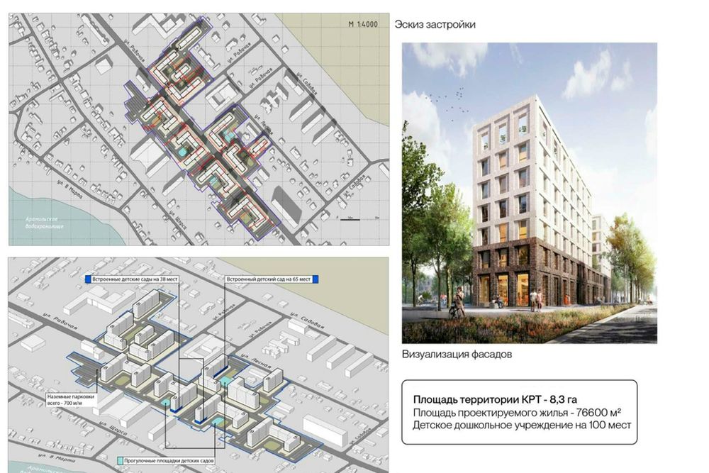 Ключевой площадкой КРТ в Арамиле станет участок на улице Рабочей, где раньше стояли аварийные двухэтажки. Они расселены и снесены. Концепция проекта предусматривает застройку с общей площадью жилья более 76 тысяч квадратных метров, с парковками, детскими площадками и всей необходимой инфраструктурой, включая два встроенных детсада общей вместимостью более 100 мест.