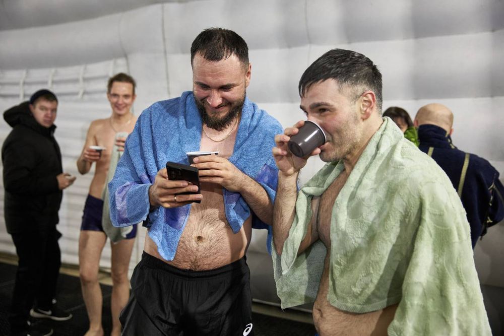 После погружения можно сразу же выпить горячего чая, который разливают добровольные помощники.