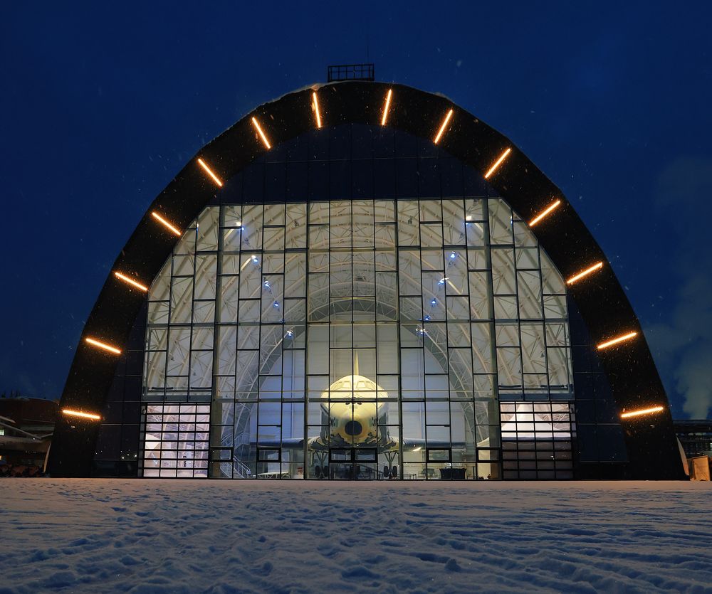 Параллельно строился современный выставочный центр, способный защитить "Буран" от суровой уральской погоды. Его архитектура сильно отличается от остальных построек Музейного комплекса – похожее на самолетный ангар здание выполнено с использованием интересных световых решений и светопрозрачных фасадных конструкций.
