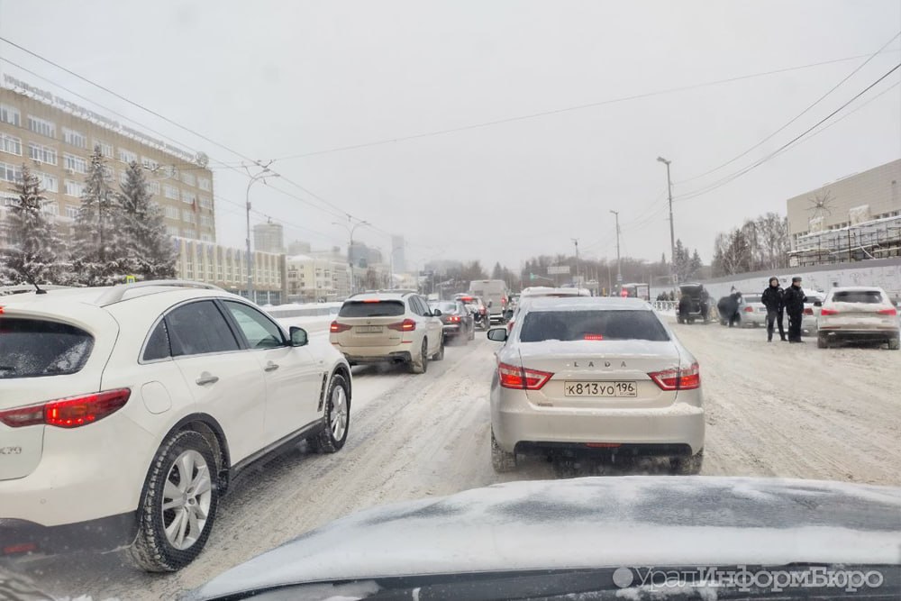 "Мыло на дороге". Снегопад парализовал Екатеринбург – всюду пробки и ДТП
