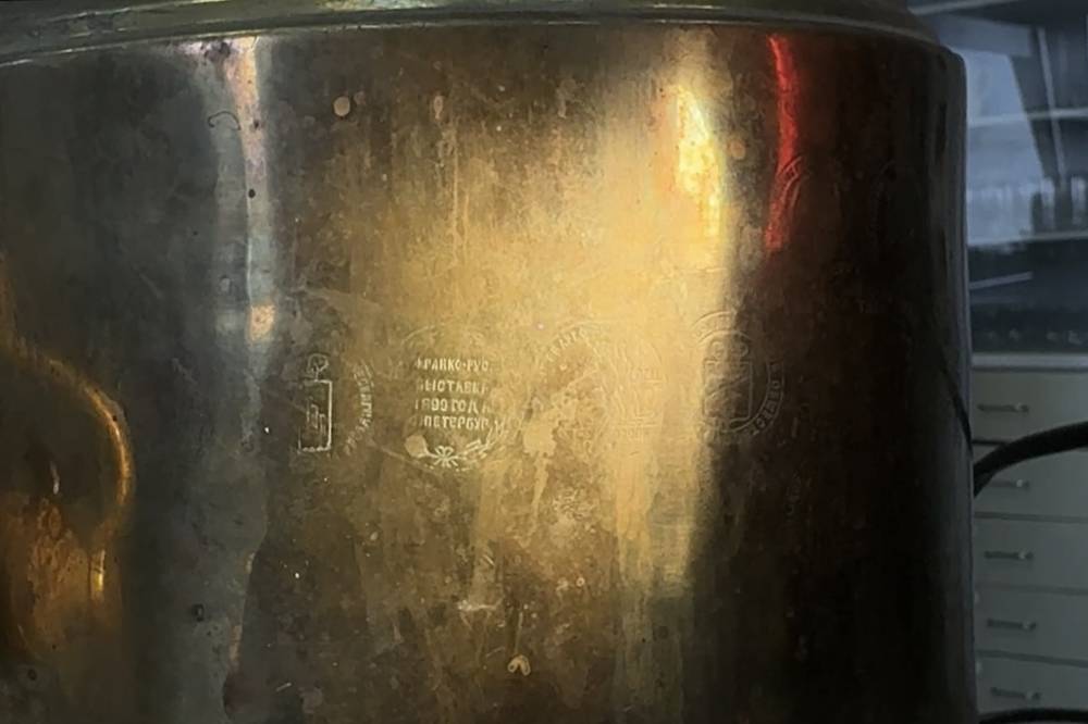 "Самовар произвели на фабриках купцов братьев Шемариных – "поставщиков Двора Его Императорского Величества Шаха персидского". Весь самовар уставлен клеймами, и некоторые из них еще можно прочитать: "франко-рус. выставка 1899 года С. Петербург", "за трудъ и успехъ", "Николай II имп. Самодер. Росс", – рассказали в пресс-службе Уральского таможенного управления.