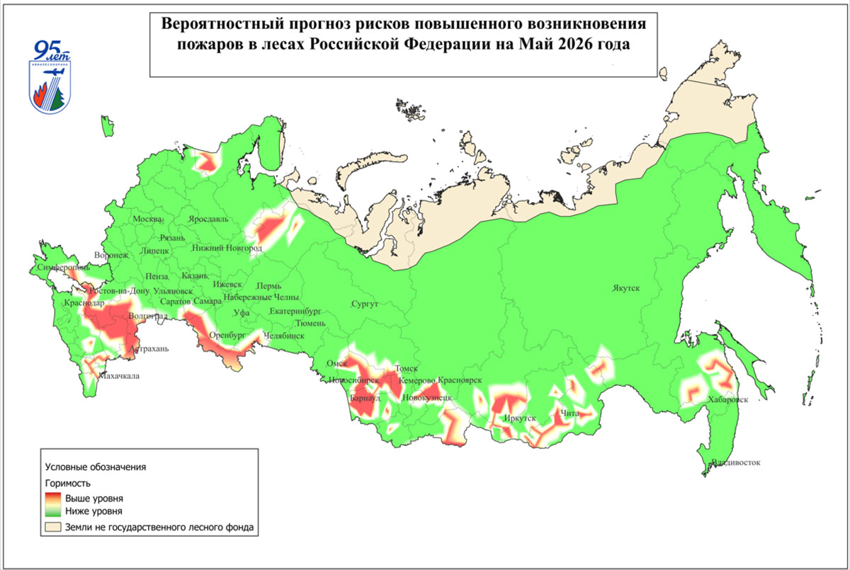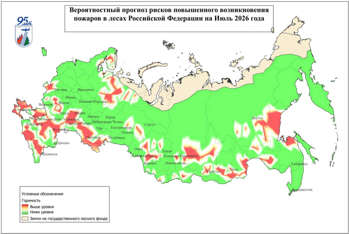 Прогноз повышенных пожарных рисков до октября 2026 года сформирован на основе данных Росгидромета. Он будет ежемесячно корректироваться.