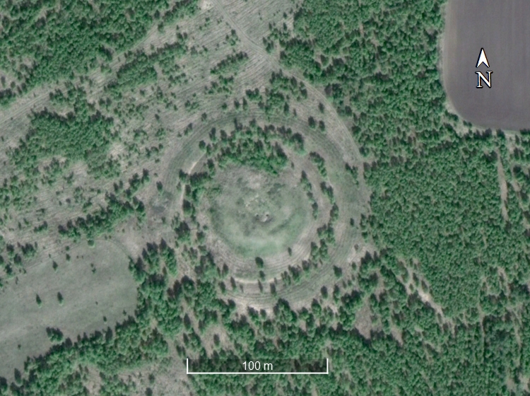 Курган с основанием диаметром до 120 метров и высотой 7 метров окружен рвом, а вдоль его внешнего края расположен вал. Подобные сооружения были местом погребения высшей племенной знати и центрами сложных поминальных обрядов.