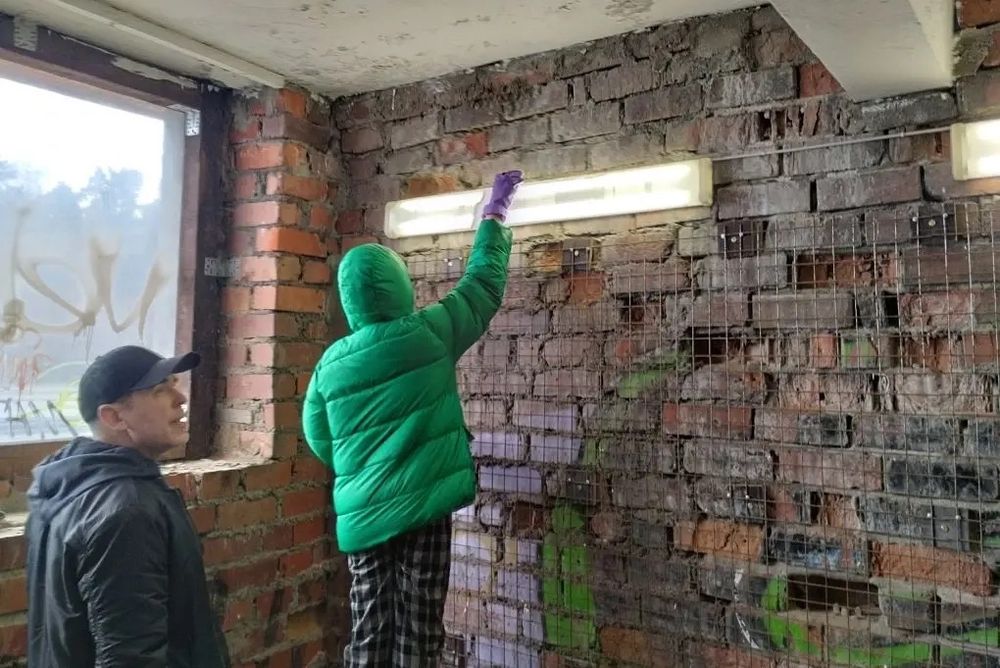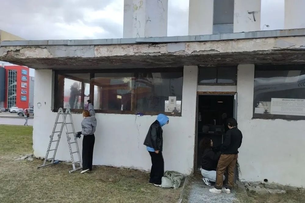 Волонтеры убирали мусор вокруг и внутри строения, пылесосили и мыли окна.