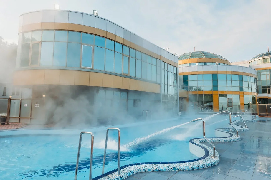 Открытый термальный бассейн - один из первых объектов такого рода в России. Вода из принадлежащей отелю артезианской скважины — с "особинкой": в ней содержится карловарская соль. Купаться в таком бассейне очень комфортно даже в прохладный день: вода подогревается, а перед поступлением в чашу бассейна проходит многоступенчатую очистку.