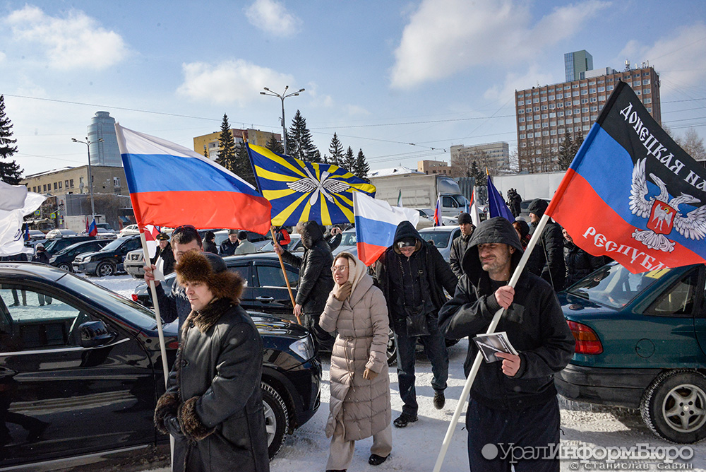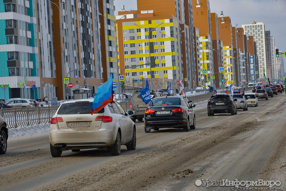 В Екатеринбурге прошел очередной автопробег в поддержку российских военных на Украине. Корреспондент "Уралинформбюро" пообщался с его участниками.