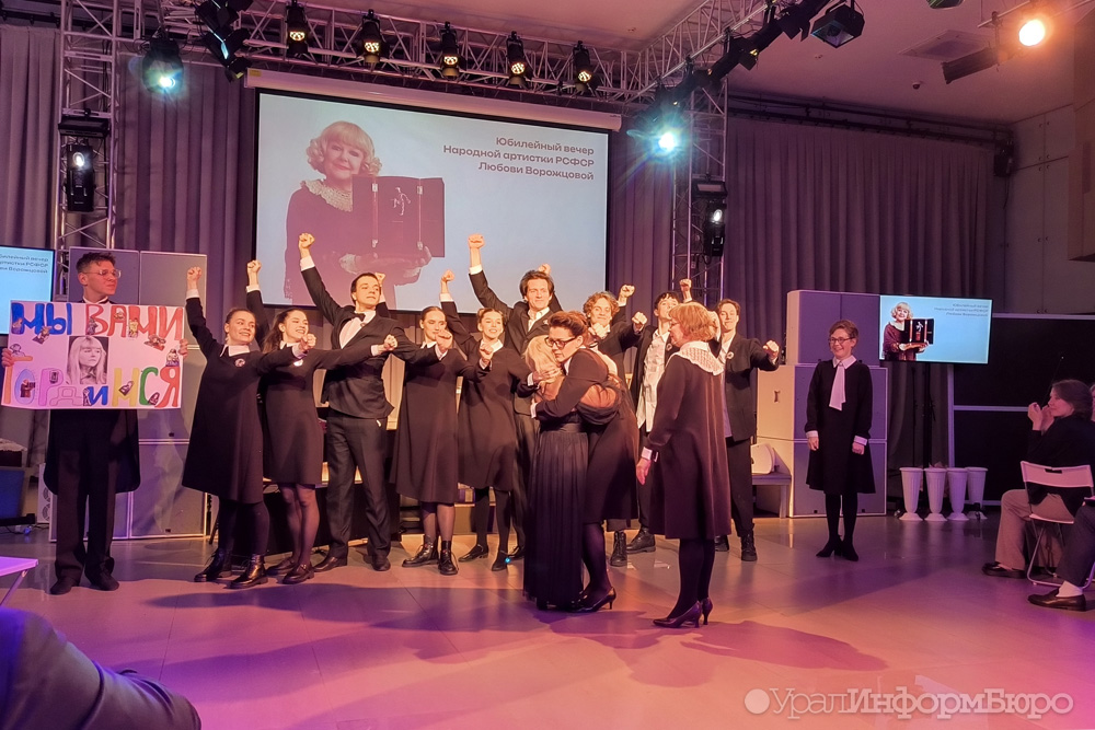 Поздравить Любовь Ворожцову пришли первые лица города – в зале присутствовали свердловский министр культуры Светлана Учайкина и глава управления культуры города Илья Марков, председатель Екатеринбургской городской думы Анна Гурарий и ее первый заместитель Михаил Матвеев, представители региональной ячейки зачитали поздравительный адрес от председателя Союза театральных деятелей Владимира Машкова.