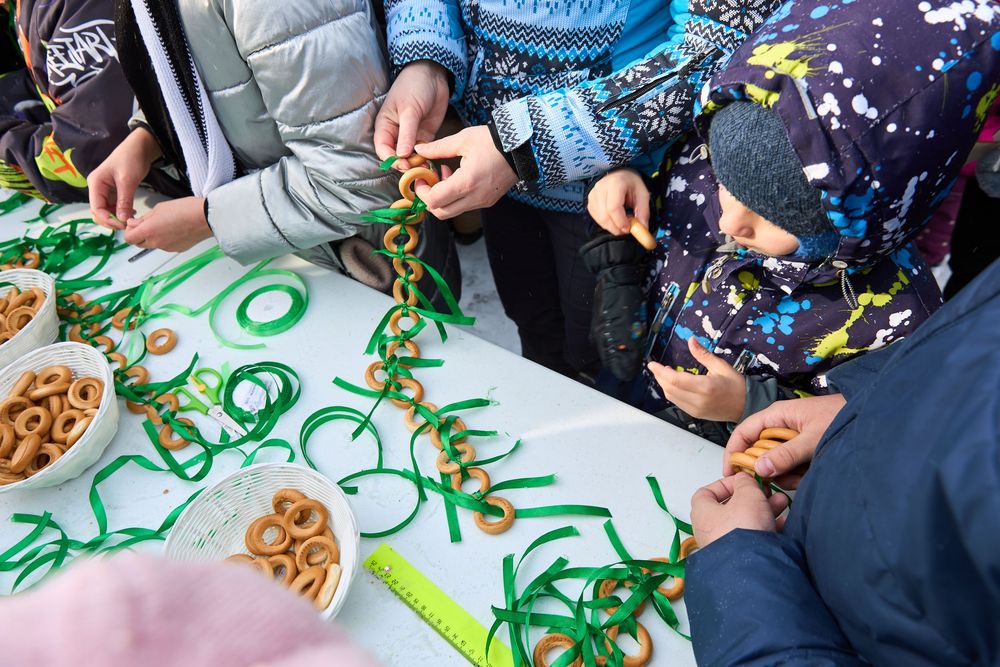 На мастер-классах можно было сделать куклу-Масленицу, раскрасить деревянную игрушку и создать модные в этом сезоне ожерелья из лент и сушек.