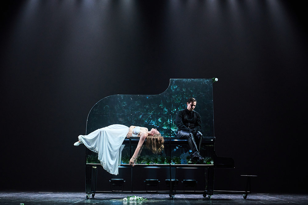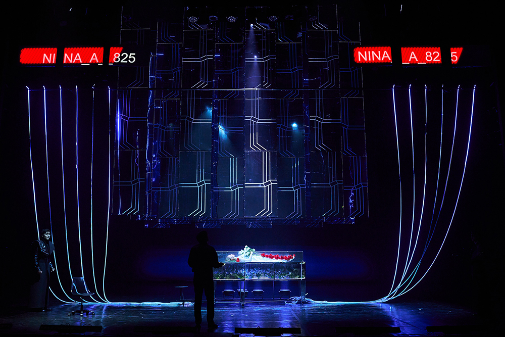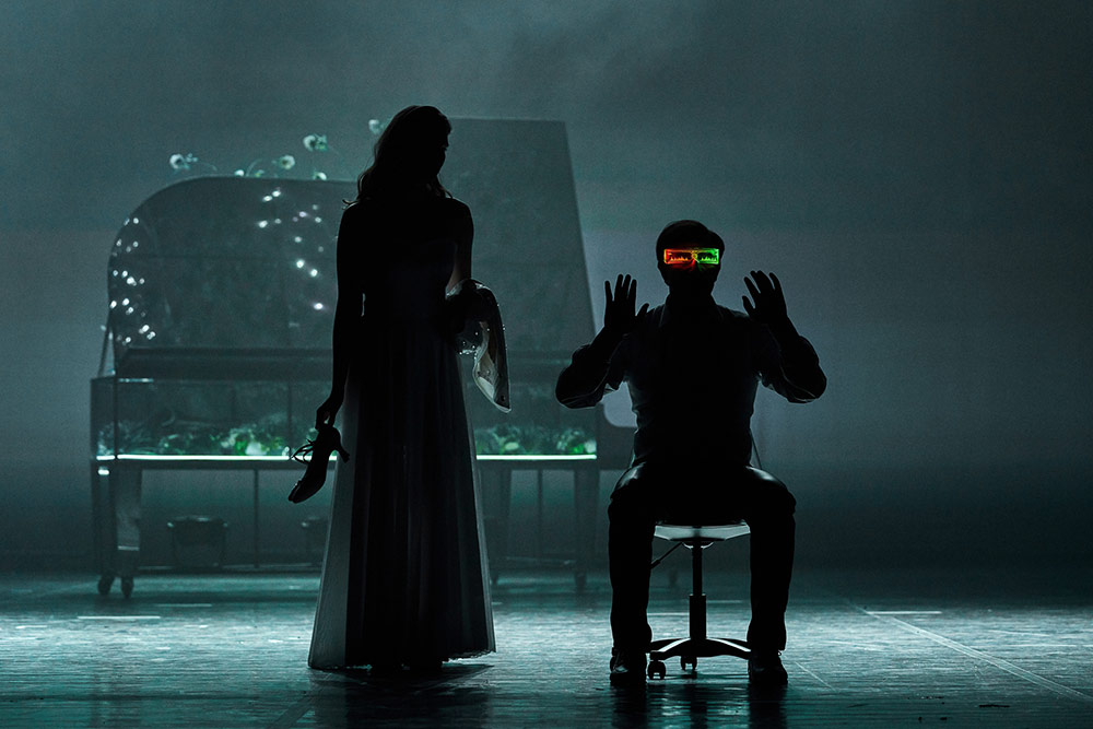Чтобы выбить академическую пыль, осевшую за годы на томике Лермонтова, кажется, задействованы все средства. И поначалу случившееся на сцене киберпанк-цунами оглушает. Среди всего этого мерцания и танцев нужно усилие, чтобы распутать вязь поэтических реплик (это и в самой-то пьесе не так просто). Тех же, кто выдержит эту визуальную атаку (красиво и качественно сделанную), ждет награда. Начиная со сцены в доме Арбенина картинка уходит на второй план, включается театр. Умолкает светский шум, уходит мельтешение. Мы в крепости, в доме, где пока что есть только музыка и любовь. Об этом – "хрустальный" рояль из плексигласа, каким-то неведомым способом превращенный художником Паненковым в полный живых цветов аквариум (прямо по Фету – "рояль был весь раскрыт и струны в нем дрожали"). Возвращается Нина, и на несколько последних мгновений перед нами Арбенин-человек, а не машина для мести.